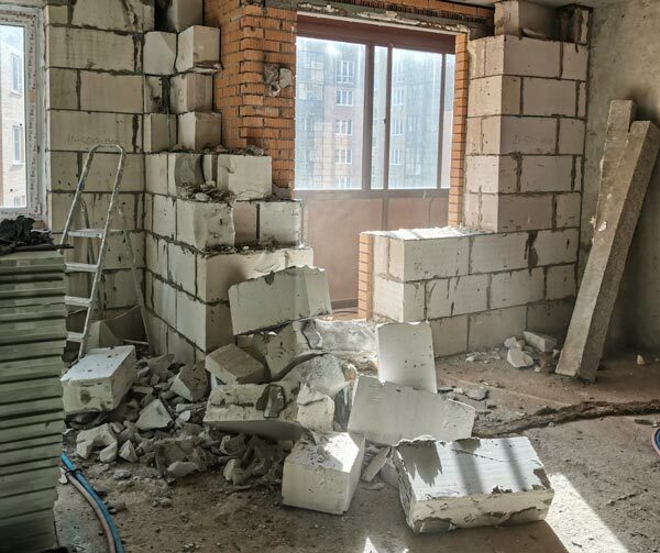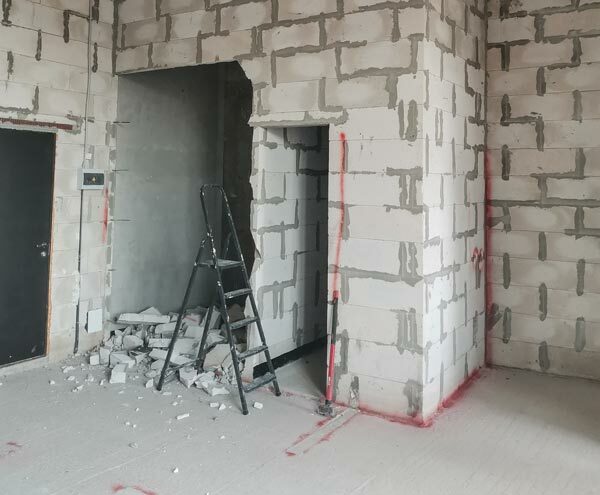Против повреждения всей конструкции объекта всегда следует помнить о перераспределении нагрузки, поэтому ни в коем случае нельзя разрушать несущие стены. Наши специалисты используют разные методы работы и инструменты в зависимости от разновидности стеновых перегородок.